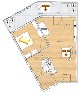 Wohnungsfläche 67m², Balkon 20m²