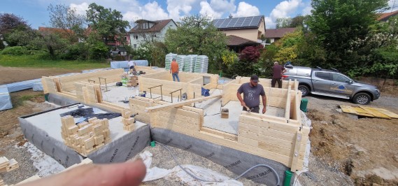 Ich selbst bin nicht nur Planer, sondern auch "Zupacker", konnte auf vielen Baustellen mithelfen und 2022 sogar einem Freund helfen, ein ganzes Haus aus Holzbalken aufzubauen, Bilder siehe unten. 2008 war ich an einem Fertighaus-Aufbau und Innenausbau mit aktiv, 2011 als Miteigentümer bei einem Komplett-Umbau.